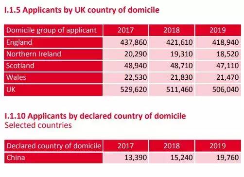 UCAS(英国大学招生服务中心)发布的2019年最新数据: