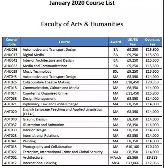 考文垂被称为英国的“汽车之城”,考文垂大学的汽车工程专业在全英排名第一,世界排名前三,提供实习的机会也很多。他家一月份课程开设的比较多(戳下图),伦敦校区的大部分专业都比较热门。